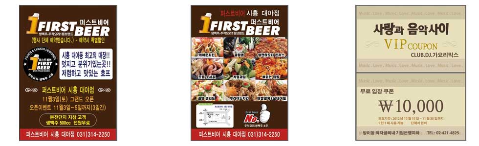 전단지 마케팅전단지 마케팅은 저렴하고 효과적인 광고 방법 중 하나로 소기업, 소상공인들이 보편적으로 많이 사용하는 마케팅 전술입니다. 하나, 전단지 효과는 고객 반응율이 0.1~0.4% 정도로(신문삽지의 경우) 1,000장 배포시 1~4명 정도 문의전화나 방문을 한다고 합니다. 단순히 전단지만 제작하는 것이 아니라 차별 요소를 두어 고객들에게 다가서야 할 것 입니다.